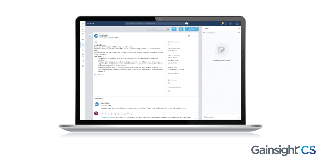 - With on-the-go access to Timeline and Sally, customer owners always have the insight they need to effectively drive their customers’ success.