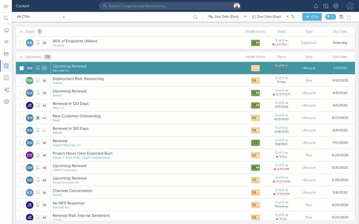- Push notifications let CSMs know when their attention is needed on an account or they have upcoming customer meetings.