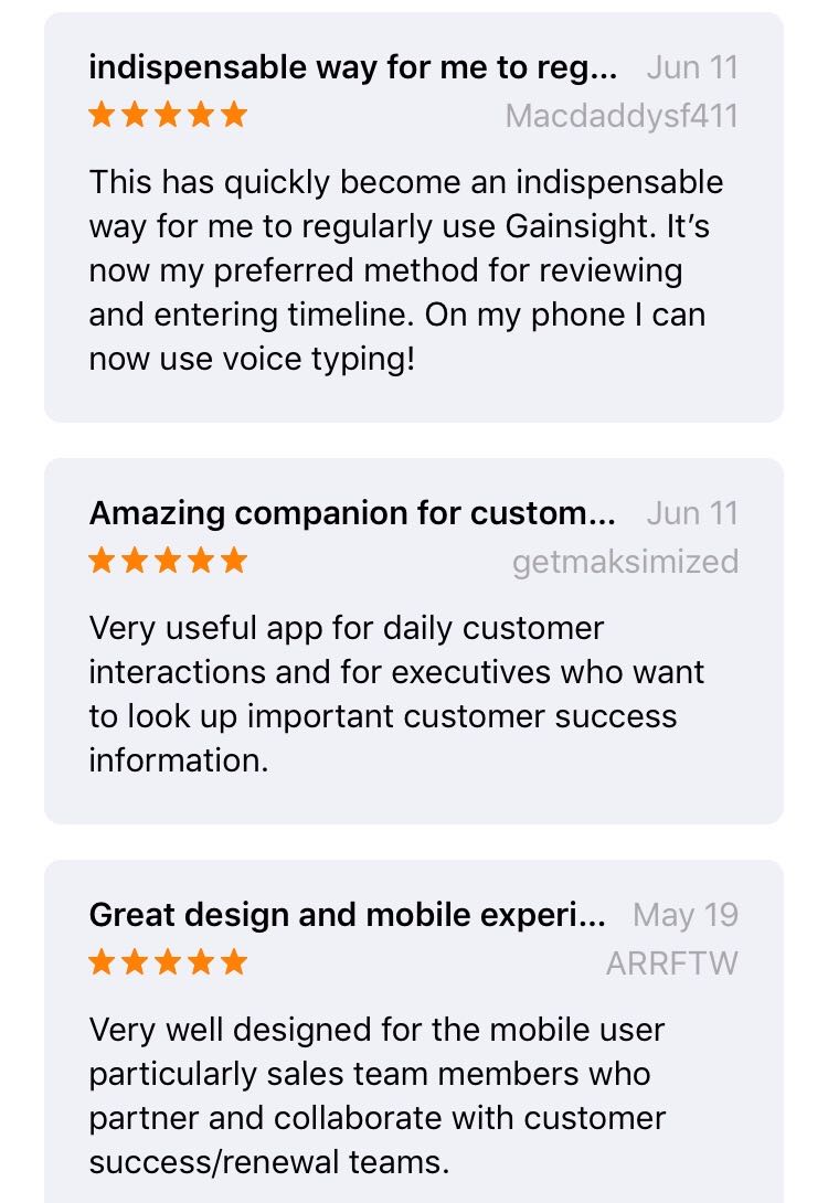 To date, over 2,500 users have the Gainsight mobile app in their pockets. Here’s what some of them said.