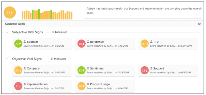 To check if a customer is successful, our Sales team looks up the Health Scorecards for a given client—either within the C360 page in Gainsight or on the Gainsight Sales View that sits within the Account or Opportunity page in Salesforce.
