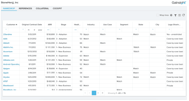 Our Sales team leverages NameDrop to quickly know which of our customers are similar to the prospect they’re engaged. It’s easily accessible in the Gainsight Sales View, right on the Account and Opportunity pages in Salesforce. It empowers them with knowledge of our customers, even if they have no time to prepare.