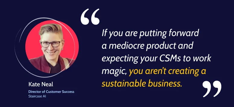 If you’ve stuck with me this long, you’ll recall in the beginning of this article, I mentioned that CSMs are oftentimes filling product gaps versus playing strategic/relationships building roles. If you find your team in that situation, it’s time to have a conversation with your product and leadership teams around current product gaps/challenges and creating a roadmap to reduce customer friction and increase their ability to achieve the outcomes they want.