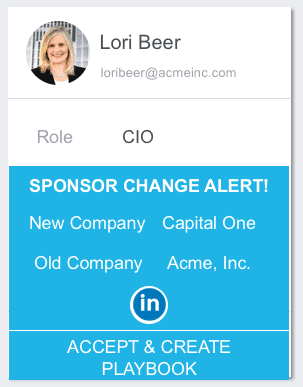- Know when they change their titles, companies, or locations: Using Sponsor Tracking functionality in Gainsight, you will be alerted when key contacts make changes to their LinkedIn profile.