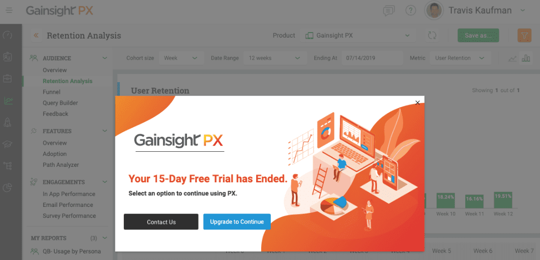 Paywalls are one of the many in-app engagements you can introduce into your product to drive growth for your organization. If you’re curious to see the experience first hand, feel free to start your 15-day free trial of Gainsight PX today and let us know what you think.