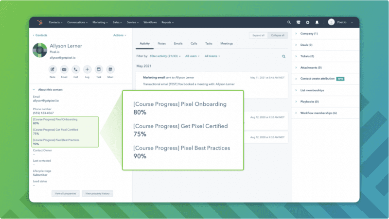 You can take this further by connecting your LMS with your customer relationship management software (CRM) like HubSpot.