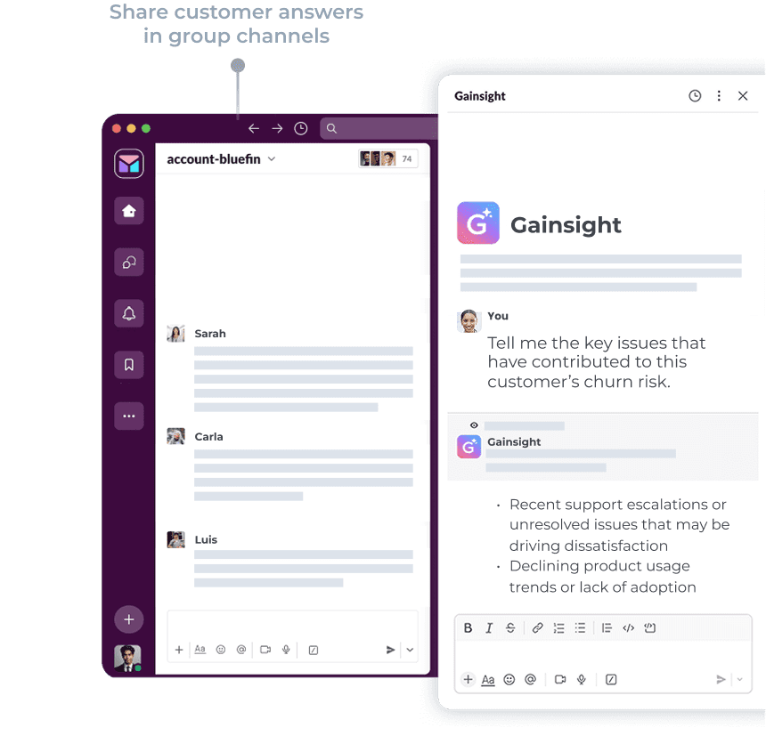 Get answers when you need them, with access the customer insights, best practices & AI content generation capabilities you need—right in Slack.